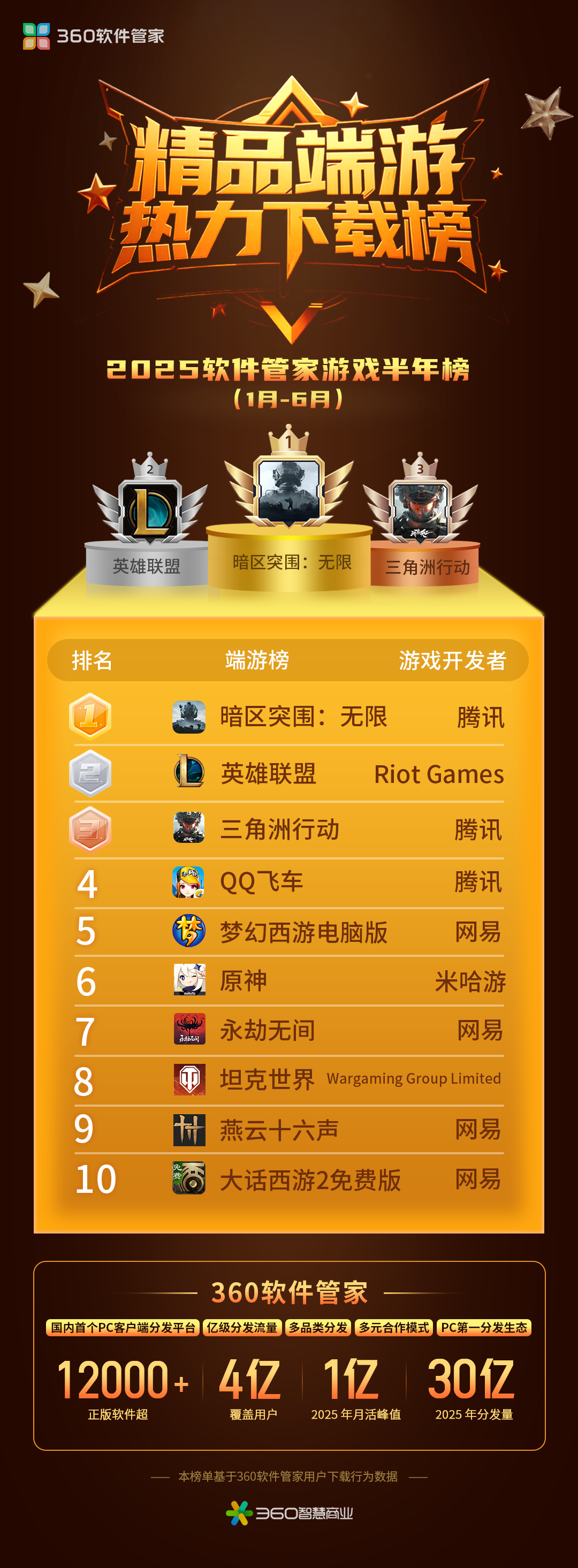 360软件管家发布2025年游戏半年榜,透视游戏市场发展趋势!