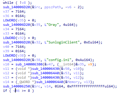 通过分析,我们发现注入内存执行的是远控木马。该远控木马可以实现远程执行文件、修改注册表获取用户机器信息等常规远控功能此外,还会查询用户机器是否有向日葵远程工具,如有会获取向日葵的机器码和密码。